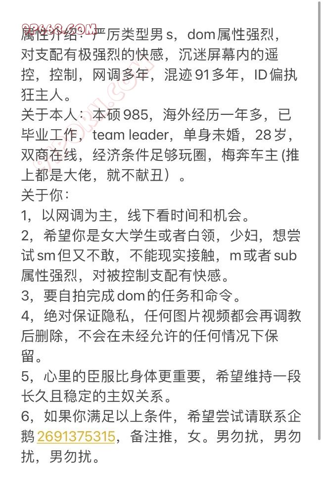 只收无法现实的网调女m,控制羞辱玩弄调教,满足奴性,保护隐私,企鹅2691375315