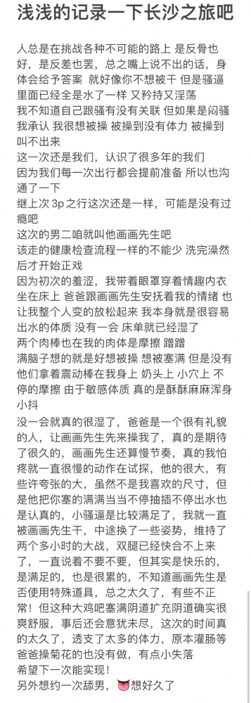 作为入圈7年的S主,也发了不少贴交了很多朋友,期间也经历骗子,嘴上王者,鸽子大哥大姐,不过功夫不负有心人,更多的三观和情趣相投的朋友认识了我,长期短期的都有,幸不负卿,为3对夫妻达成心愿,为两对夫妻消除芥蒂并成功活动,期间经历的M大约20多个,各种K型的都有,也拓宽了我的视野,感谢各位的陪伴。