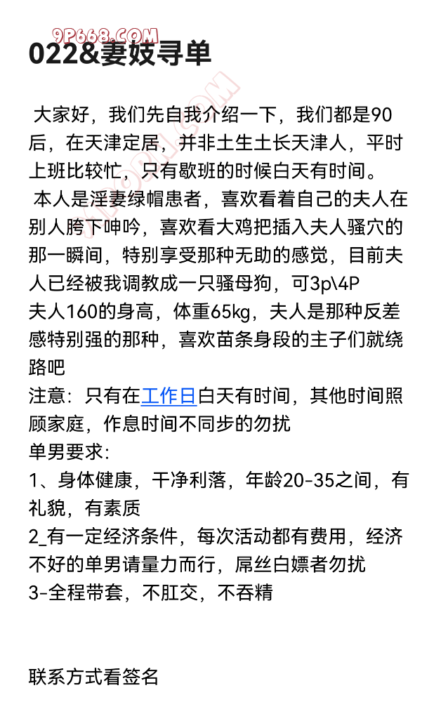 [天津]为妻寻单,分享一下 发帖