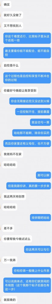 做了也得把结尾怎么上的聊天,和事后聊天发出来啊,算是有始有终,让我们等那么多天就突然说几句没后续了,这女的勾引男的感觉再刺激也不好看,那适合女人看,这里都是男的,看起来兴趣不高呀
